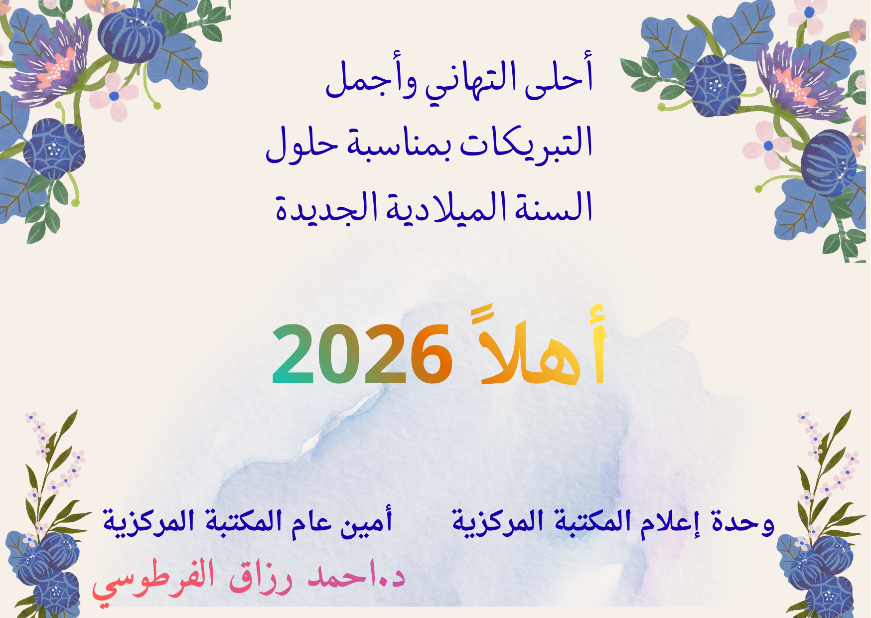 تهنئة أمين عام المكتبة المركزية بمناسبة حلول العام الميلادي الجديد